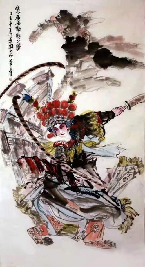 华玉清创作的国画穆桂英策马扬鞭战必胜
