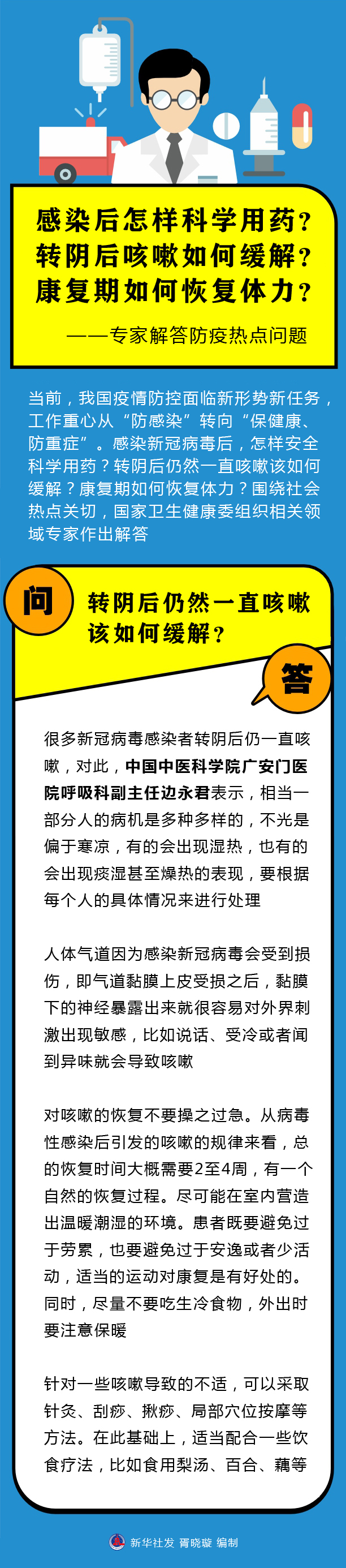 感染后怎样科学用药?转阴后咳嗽如何缓解?康复期如何恢复体力?——专家解答防疫热点问题