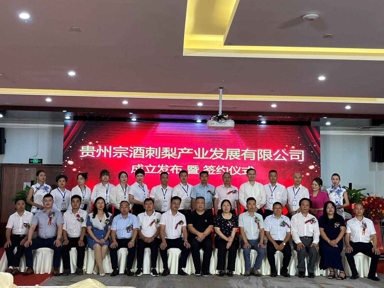 为进一步发展壮大刺梨产业,助推关岭乡村振兴,8月11日,贵州宗酒刺梨产业发展有限公司成立发布暨签约仪式在关岭县举行。关岭县人民政府副县长卢彦,县政府副县长李鹏,娃哈哈品牌旗下宗盛智能总裁吴坚,贵州宗盛刺梨产业(集团)有限公司总经理敖正飞等相关领导和嘉宾出席会议。