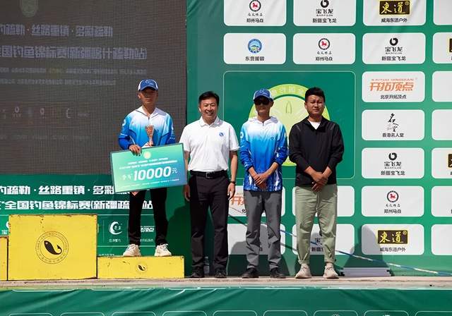 颁奖仪式中,国家体育总局监察局原局长、中国钓鱼运动协会会长施泽华和疏勒县委书记宋良强共同为冠军崔日颁奖,疏勒县委副书记、政府县长阿不力米提·阿塔吾拉和新疆宝飞龙户外体育用品有限公司董事长赵启龙为亚军刘闻轩颁奖,疏勒县委副书记、山东省东营市援疆工作指挥部党委书记赵峰和郑州马焱精品渔具有限责任公司总经理马焱、威海东道户外用品有限公司西北地区经理赵璞共同为季军张龙龙颁奖。